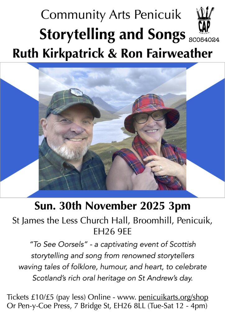or from Pen-y-Coe Press, 7 Bridge Street, Penicuik, EH26 8LL (Tue-Sat 12 noon – 4pm)